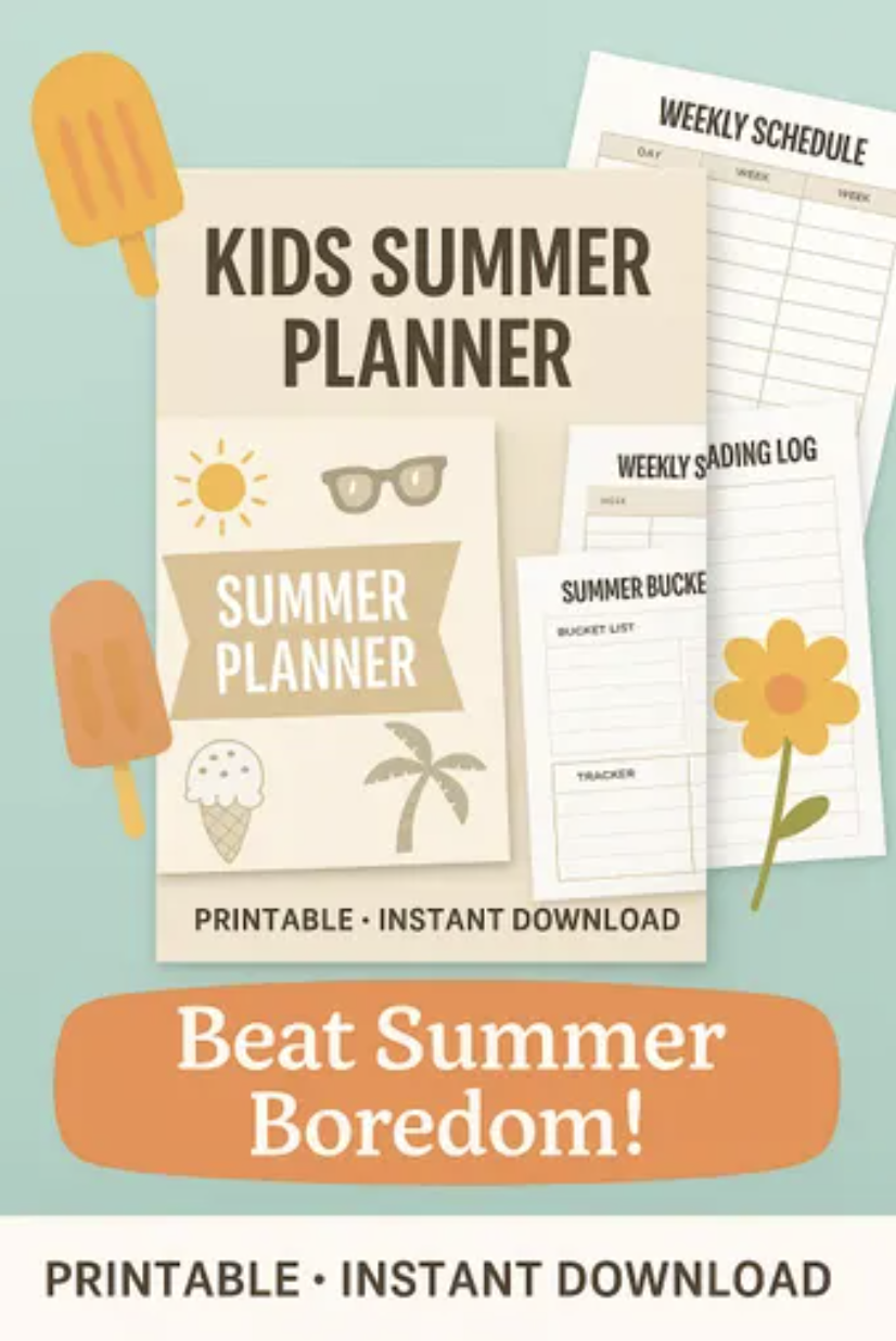 Kids Summer Planner Printable – Daily & Weekly Schedule, Goal Tracker, Reading Log – Summer Routine for Kids